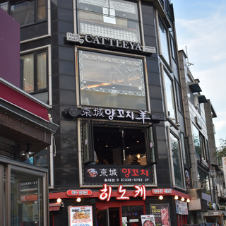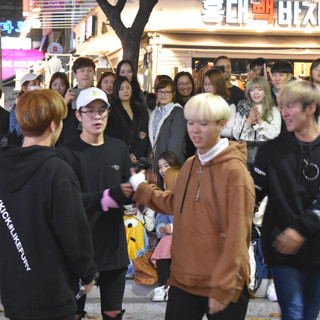 Jane had om 5 uur een afspraak in Hongdae, een populaire buurt niet ver bij het huis vandaan. Ze stelde voor dat wij met haar mee zouden reizen, daar wat rond zouden kijken en vervolgens rond een uur of 7 weer opgepikt zouden worden door haar dochter, Ji Young. Mits we niet al te moe waren natuurlijk, en echt niet liever wilden gaan slapen. Ja natuurlijk waren we kapot, maar als we nu gaan slapen komen we nooit van die jetlag af, dus kom maar op! Nadat ze ons geholpen had een buskaart aan te schaffen, stapten we op een van de vele bussen en liet ze ons achter op Hongdae. Een populaire buurt was het zeker; het was ontzettend druk, en er leken voornamelijk jongeren rond te lopen. Ji Young vertelde later dat dat komt doordat er drie grote universiteiten in de buurt zitten. Interessante wijk, dus! Chris en ik keken onze ogen uit naar alle verschillende stijlen gebouwen die er te zien waren. Ik vond het geweldig - alles is zo kleurrijk en gevariëerd! Het zijn vooral hoge gebouwen met meerdere verdiepingen, en dan het liefst met alles door elkaar. Restaurants, kappers, bars, en nagelstudio's bijvoorbeeld, dat lijkt een populaire combinatie te zijn. Ook de mensen zijn ontzettend gevariëerd. Zó veel verschillende kledingstijlen; het geheel deed me eigenlijk een beetje denken aan Harajuku in Tokyo. Hier kom ik zeker nog wel eens een keertje terug als ik wat minder moe ben! De kers op de taart waren de vele street performances: zangers, gitaristen, dansers, alles door elkaar. Echt letterlijk door elkaar, want iedereen stond zo dicht bij elkaar dat het alle muziek een luide kakafonie vormde. Fan-tas-tisch, echt. Seoul zoals je het op internet ziet!